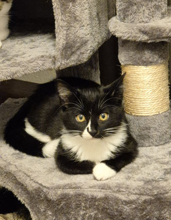 Emelie ist ein Findelkind, sie wurde von einer Katzenamme angenommen und gesäugt. Sie wuchs mit 3 kleinen Katern auf, mit denen sie auch wunderbar spielt. Emelie sollte als