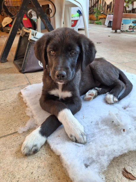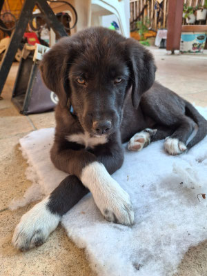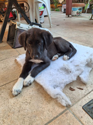Wunderschöner schwarz weißer Welpe, ca 4 Monate alt und 3,5 Kilo schwer, wahrscheinlich mittelgroß werdend, sucht seine Familie.